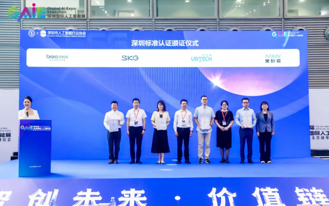与此同时,工业制造发展论坛暨深圳标准认证颁证大会也在7号馆会议室3举行,主题为“智造未来,产业焕新”。深圳市市场监督管理局标准处处长史诗祯在现场致辞,强调了人工智能在智能终端领域的重要 性,并对深圳标准认证工作提出建议。之后,论坛举行了深圳标准认证颁证仪式——智能终端产品,多家企业获证。